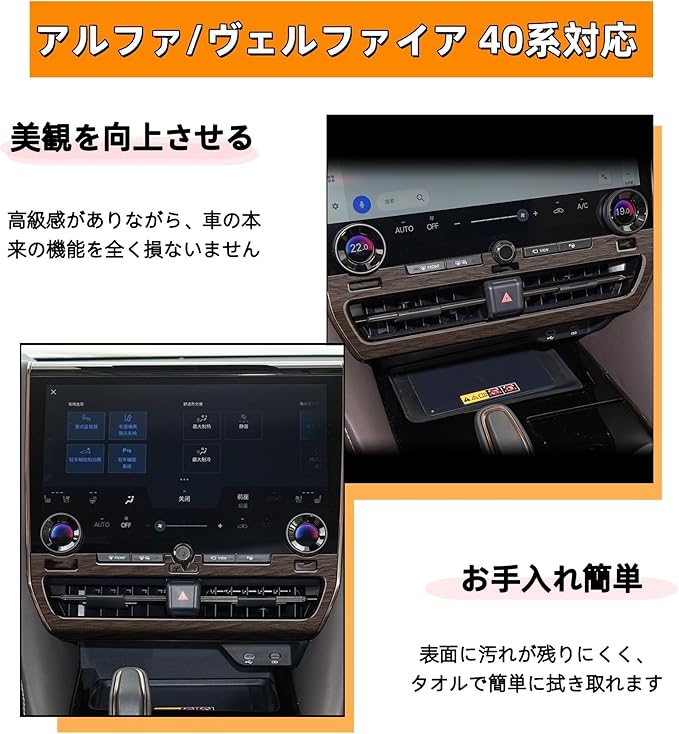 【適合車種】:この内装パネルは、アルファード/ヴェルファイア 40系の車種に完全に適合し、車内の装飾品質を向上させることができます。商品は必要な位置に簡単に取り付けることができます。