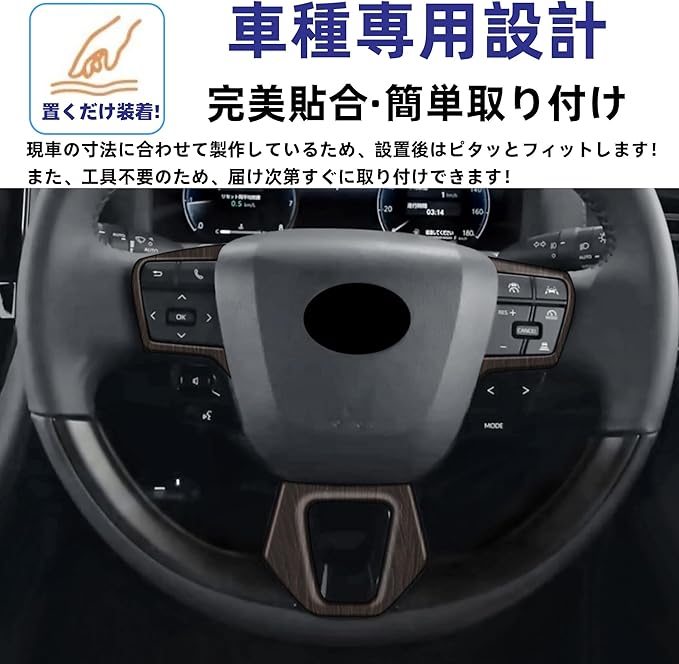 新型 アルファード/ヴェルファイア40系 に適合 アクセサリー ステアリングパネル カバー ステアリングホイールトリムパネル 専用カスタム 内装パーツ (木目調ブラック)