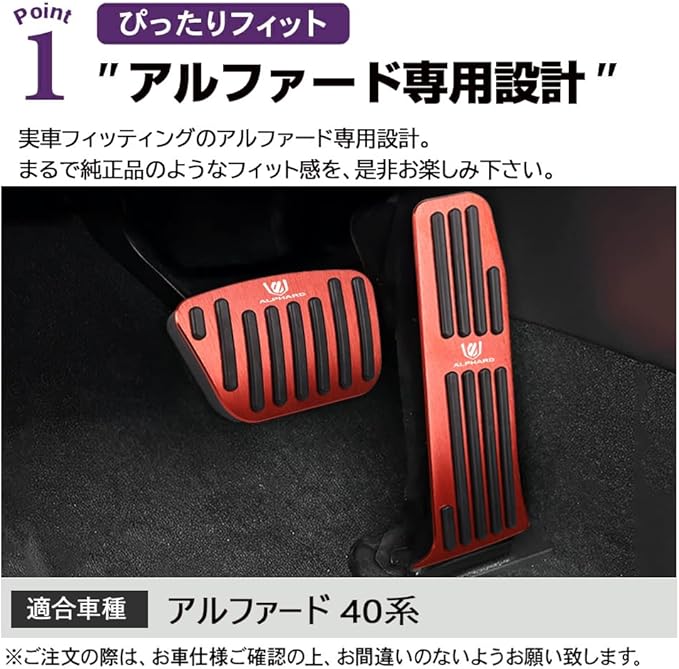 アルファード 40系 専用設計 ペダルカバー ロゴ付き アルミカバー アクセル ブレーキペダルカバー 2個セット(シルバー)