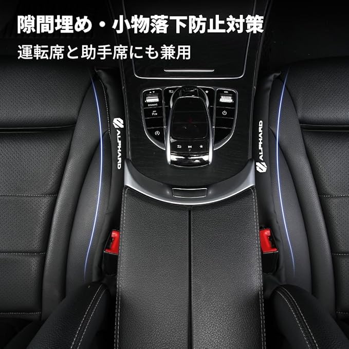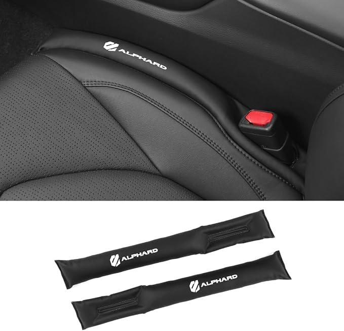 【アルファード 専用】シート隙間クッション 隙間埋め 車用 ALPHARD 専用ロゴ シートサイド クッション アルファード カスタム 20系 30系 40系 シート コンソール 隙間 落下防止 小物放置 車内 puレザー カー用品 内装パーツ 運転席+助手席 ロゴ左右対称設計 2本入り (ブラック, アルファード 専用)