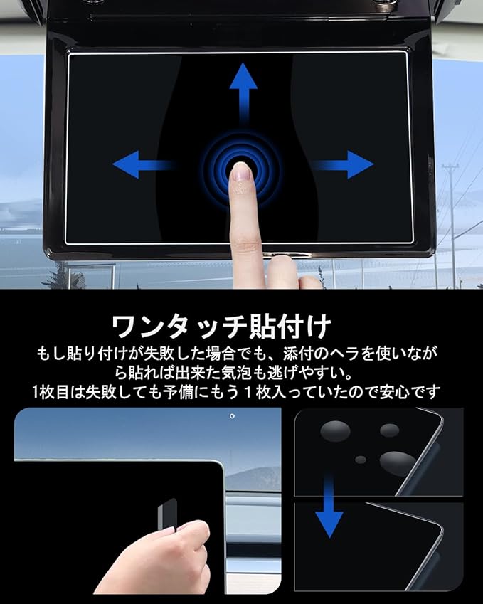 【貼り付け簡単・気泡防止】貼り付け作業=難しいと思い込んでいませんか?シリコン自己吸着素材で、置くだけでピタッと吸着。クリーニングキット、固定用シール、ヘラまでセットになっているから、初心者でも安心して取り付け可能。気泡ができたとしても、ヘラをスーッと滑らせればきれいに逃げていく。さらに、もし2枚とも上手く貼れなかった場合も大丈夫。貼り付け状況の写真をお送りいただければ、再発送の対応が可能です。購入後も「安心」が続く、信頼のサポートです。