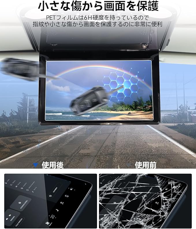 【対応車種】トヨタ 新型 ヴォクシー 90系 グレード:S-Z/S-G;ノア 90系 グレード:S-Z/S-G/Z/G/X;トヨタ 新型 アルファード 40系 Z ;ヴェルファイア 40系 Z Premier 13.2型有機EL後席ディスプレ V13T-R72F 【パッケージ内容】:ARフィルム 2枚、気泡抜きヘラ、クリーニングキット(拭き取り紙、クリーニングクロス、ホコリ除去シール)