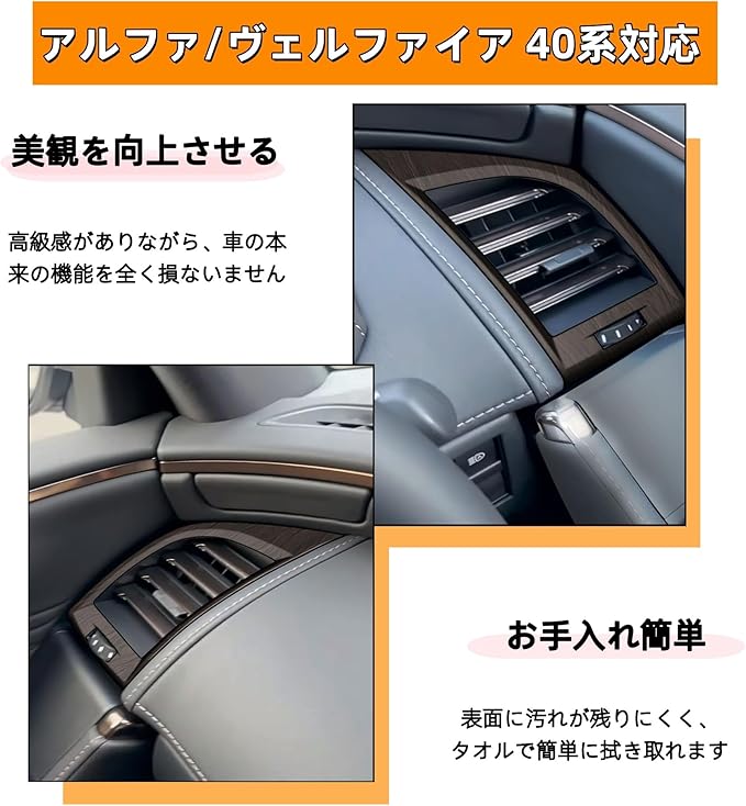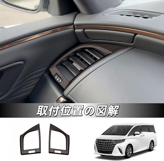 新型アルファード/ヴェルファイア 40系に対応 アクセサリー 吹出し口パネルカバーガーニッシュ エアコン吹き出し 専用 グッズ 内装パーツ(艶消し木目調)