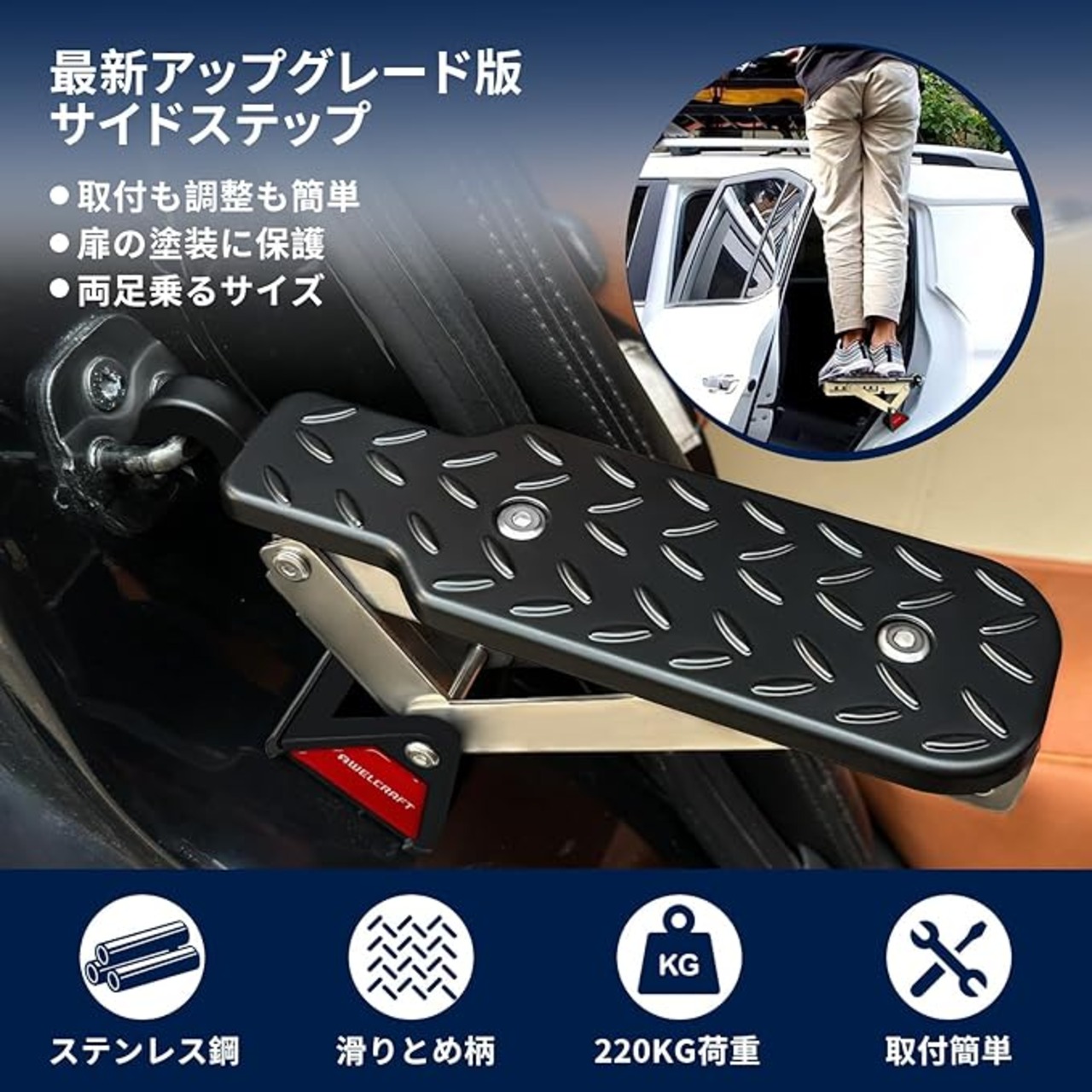 車用サイドステップ 洗車用脚立 車のドアサイドペダル 多機能 折りたたみ式 7段階角度調整 取り付け簡単 滑り止め 車のドアステップ台 洗車補助 車ルーフキャリア/ルーフラックア/ルーフボックスクセサリー ヒッチキャリア トラック用品 最大荷重220kg