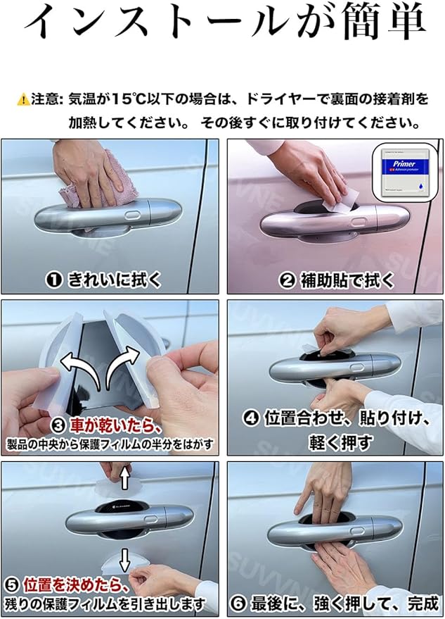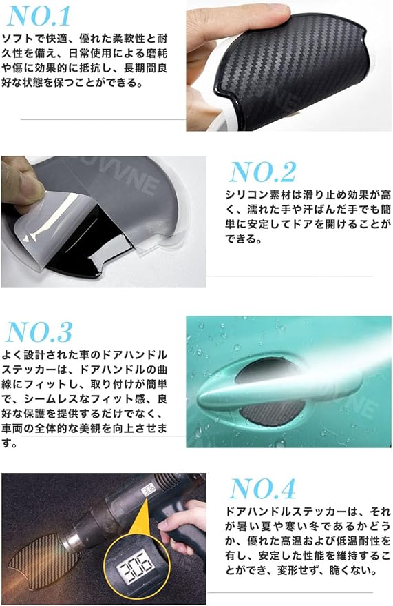 【アルファード40系専用】SUVVNE(スヴニ) ドアハンドルプロテクター 車種専用 4個セット カーボン調 傷防止ガード キズ防止 外装パーツ エンボス加工 日本語説明書付き