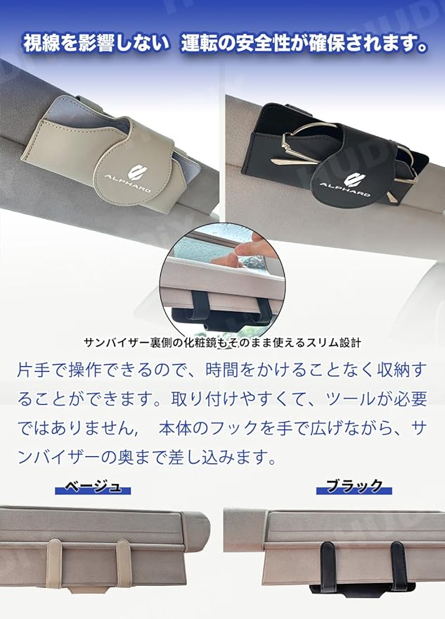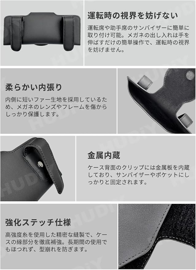 [HUDIY] フーディ 車載用 サングラスケース 専用ロゴ サングラスホルダー 遮光板取り付け型 磁気フタ PUレザー メガネケース 車内収納 運転中簡単アクセス