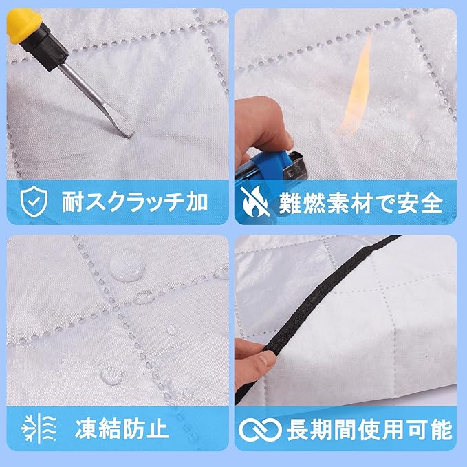 【4層構造・高品質素材】PEVAアルミ箔、防火層、保温コットン、耐摩耗PE不織布の4層構造で、耐久性と保護性能を大幅アップ。強化された素材により、凍結防止カバーとして冬季の凍結対策はもちろん、年間を通して安心してお使いいただけます。