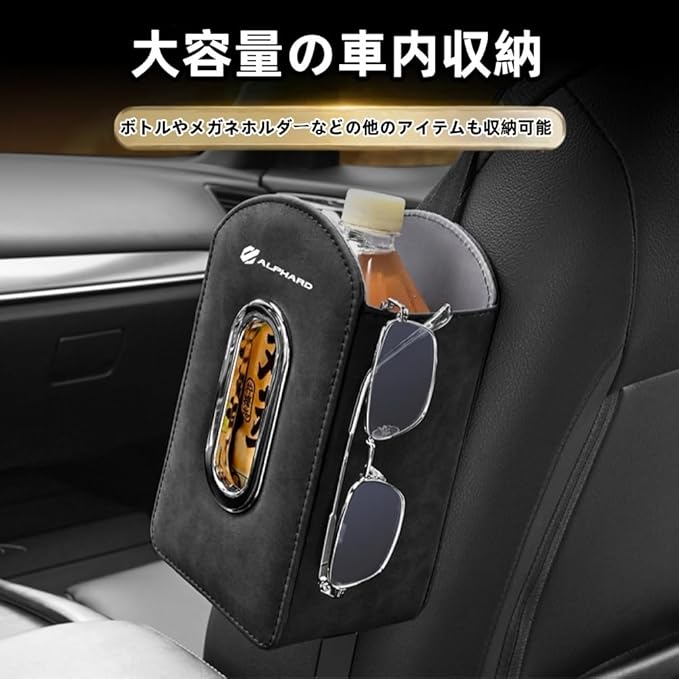 アルファード 適用 車用 ティッシュ ホルダー カーシートサイド取付 ALPHARD 20系 30系 40系 に対応 車内 ティッシュ ケース 吊り下げ ボックス 車載 小物収納 座席 側 大容量 ヘッドレスト カー アクセサリー 内装 便利グッズ 汎用(アルファードに対応,ブラック)