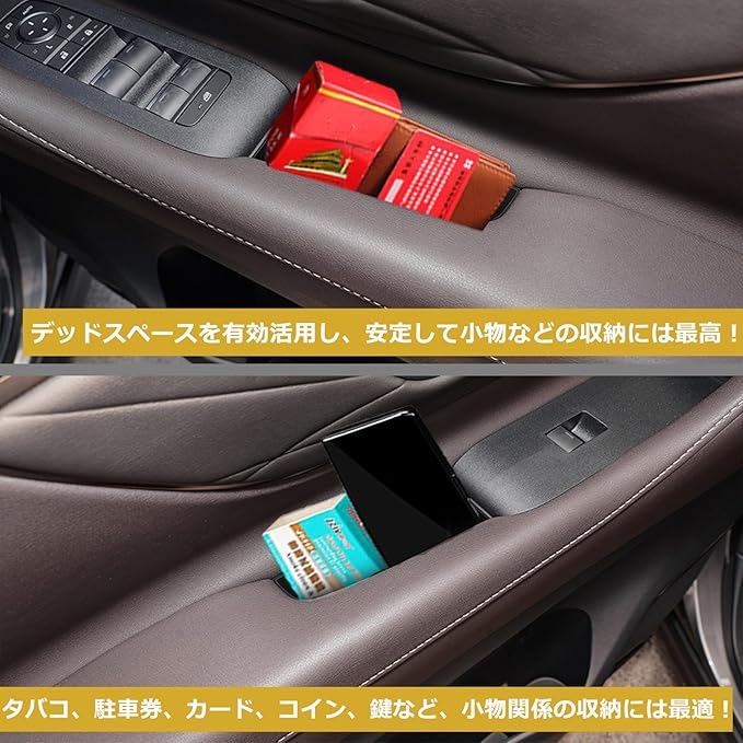 【収納アップ】:本ドアポケットはタバコ、駐車券、スマホ、カード、コイン、メガネ、クレジットカードや鍵など、小物関係の収納には最高です。小物を整理整頓し、手が届きやすい設計で、効率的な空間利用で限られたスペース活を最大限に活用できます。
