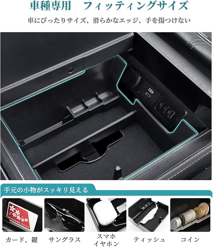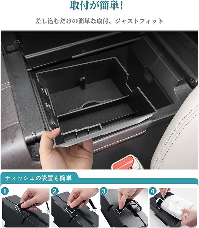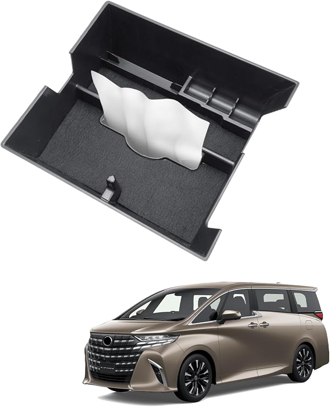 【車種専用】改良版トヨタ アルファード/ヴェルファイア 40系 2023.6~現行コンソールボックス専用 ご注意:スペースの制約により、ソフトパックティッシュをお勧めし、寸法は長さ16センチ以内、幅12センチ以内、高さ8センチ以内となります。