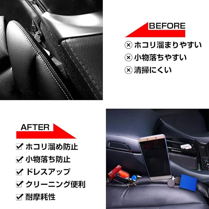 トヨタ アルファード 30系 40系に適合します。車種別専用設計でぴったりフィット!!目ただない所ですが、おしゃれに変身!!車のシートとコンソールの隙間からの荷物やゴミの落下防止でイライラ解消!!