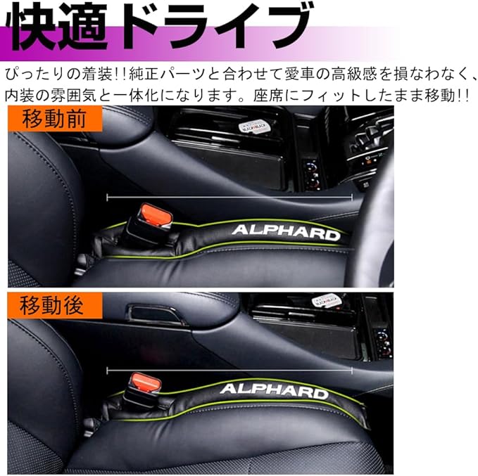 【適合車種】:トヨタ アルファード 30系 40系に適応しています。違和感なく隙間が埋まり、シートとコンソールに一体感!!愛車のワンポイントアクセントにいかがですか?