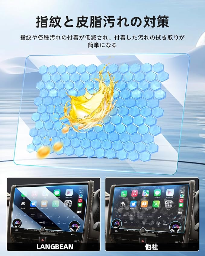 【指紋や汚れを軽減】 表面は防水・撥油・防汚加工が施されており、指紋や汚れが付きにくくなっています。 日常生活でカーナビゲーションを使用する際、画面に指紋や汚れが付いても、湿らせたペーパータオルで拭き取るだけでOK。