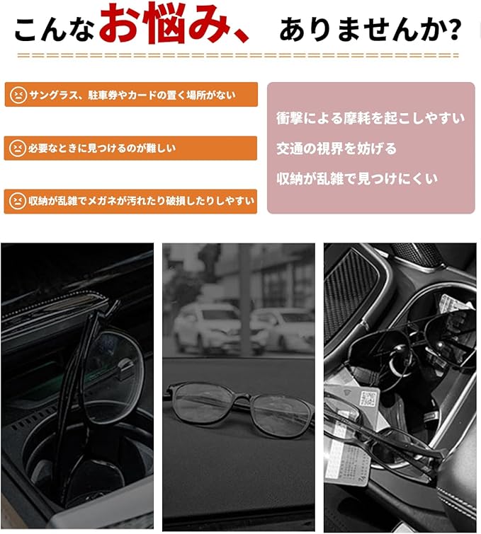 【多機能・薄型デザイン】このメガネホルダーはメガネを収納する機能だけでなく、カード収納ポート付おり、日常的に使うカードや駐車券、クーポンなどもすっきり収納できます。そして、薄型・コンパクトなサイズで運転中の視界を影響しません。