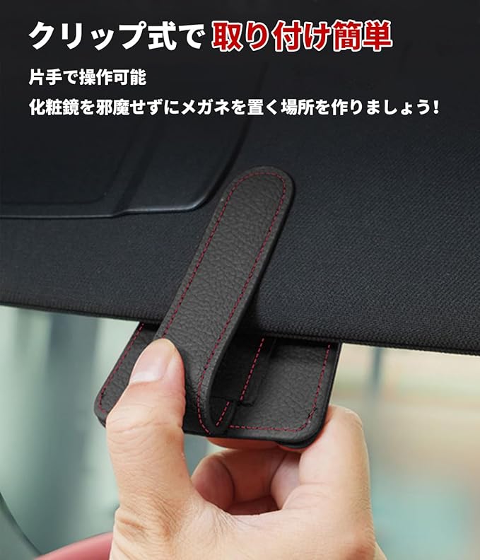 【良い耐久性・耐衝撃スポンジ設計】高品質のPUレザーを採用し、耐摩耗性、汚れに強く、耐久性が良く、長く使えます。メガネを傷つけないように、クリップの中でクッションスポンジを内蔵し、走行中の振動を恐れません!