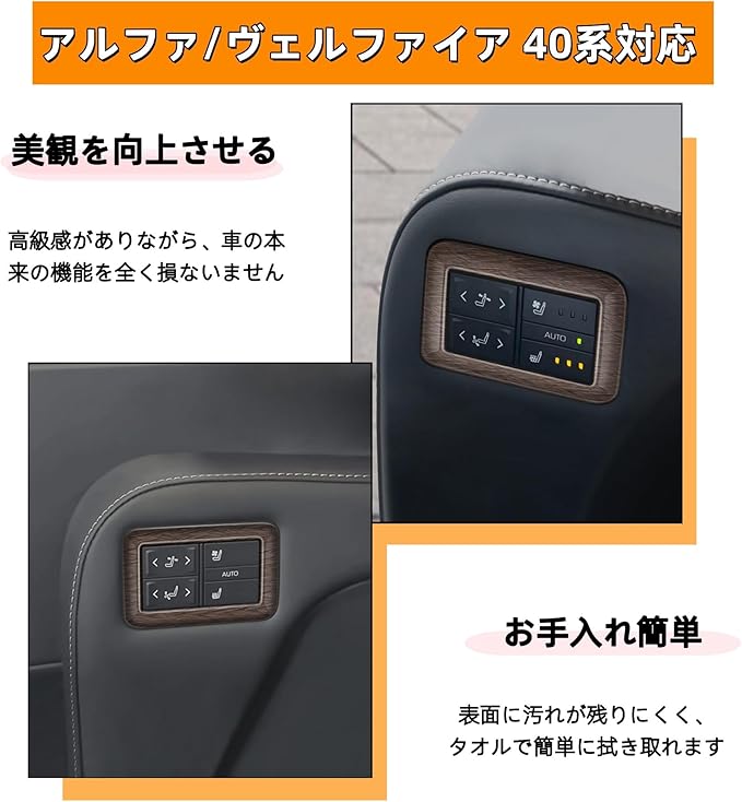 新型アルファード/ヴェルファイア 40系に対応 アクセサリー 2列シートボタンパネル、スイッチガーニッシュ、中列シートコントロールパネル 専用 グッズ 内装パーツ(木目調)