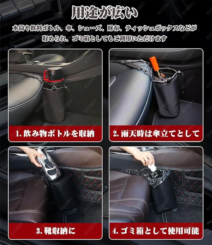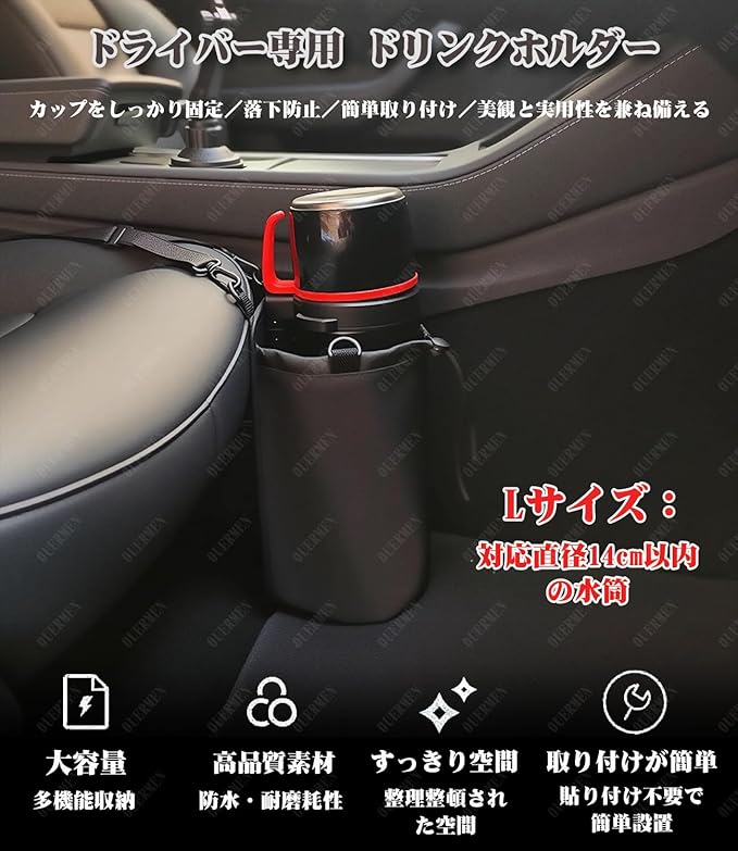 【収納可能な保温マグカップまたはポット】冬用の大きな保温容器の収納に最適です。 広々としたボディデザインで、大きな水筒やスポーツボトル、タピオカカップも楽々収納。単なるドリンクホルダーではなく、マルチ機能な収納アイテムとして、日常的には傘、シューズ、財布、ティッシュボックスの収納に、必要な時は臨時のゴミ箱としても活躍し、車内を清潔に保ちます。