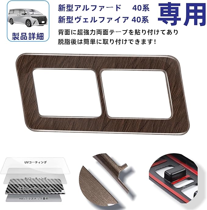 新型 アルファード/ヴェルファイア40系 に適合 アクセサリー 3列シートスイッチパネルカバー シート操作スイッチガーニッシュ 専用カスタム 内装パーツ (木目調ブラウン)