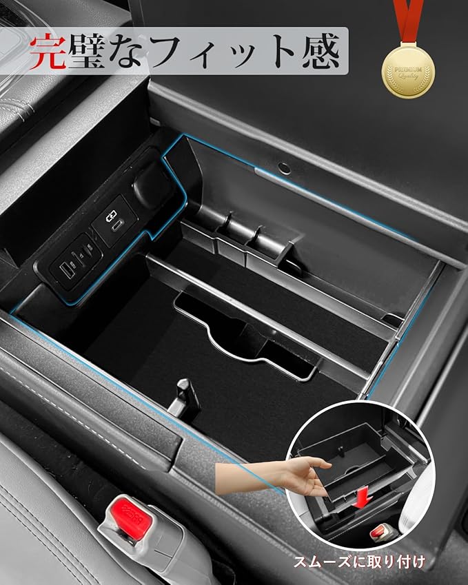 【滑り止めマット付き・騒音防止】:アルファード センターコンソールボックスは滑り止め加工済みのマットが付属しており、移動中の騒音や振動を抑え、小物の収納時に滑り落ちることを防止します。また、汚れがついた場合でも簡単に清潔して保つことができます。【取り付け・取り外しが簡単】:内蔵型コンソールボックスのインストールは非常に簡単で、差し込むだけでぴったりフィットします。40系 アルファード 純正オプションのようなフィット感を提供し、内装も傷つけずに取り付けられるデザインです。下層の物品の取り出しに影響しません。