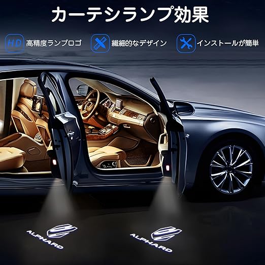 車用 カーテシランプ ドアウェルカムライト アルファード 30 / 20 系 前期 後期 に適合する パーツ アクセサリー 【2個セット】 LEDロゴ投影 高輝度(アルファードに対応-2個セット)
