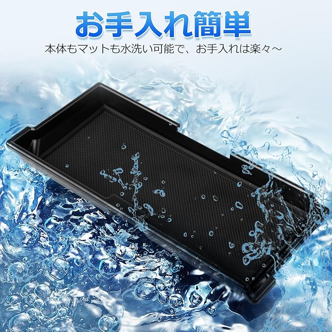 5.簡単取付&水洗い可能:助手席側下の既存の収納ボックスに置くだけでお手軽に装着し、脱着も簡単です。それに、汚れても水洗いをすれば繰り返し使用可能ですので、お手入れも楽々。ご注意:付属の両面テープは補助用で、跡が残りにくい仕様となっております。そのため粘着力は強くありません。しっかり固定されたい場合は、市販の強力両面テープをご使用ください。