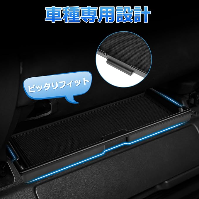 3.セット内容&素材:トレイ本体*1、滑り止めマット*1。トレイ本体はABS樹脂を採用し、耐摩擦性と耐熱性に優れているため傷つきにくく、高温の環境でも変形しません。マットは滑り止め加工済みで、運転中の振動による転回やズレを防止し、カタカタ音を軽減します。