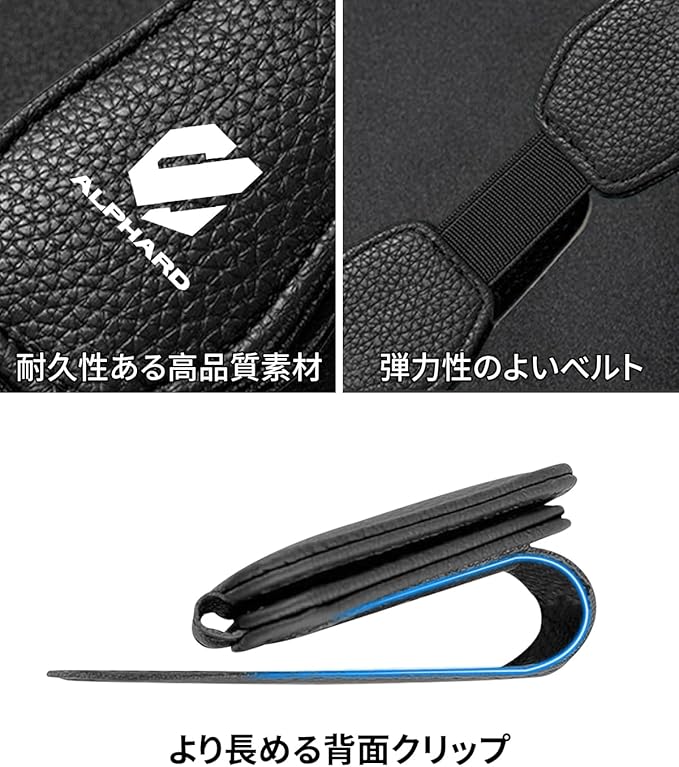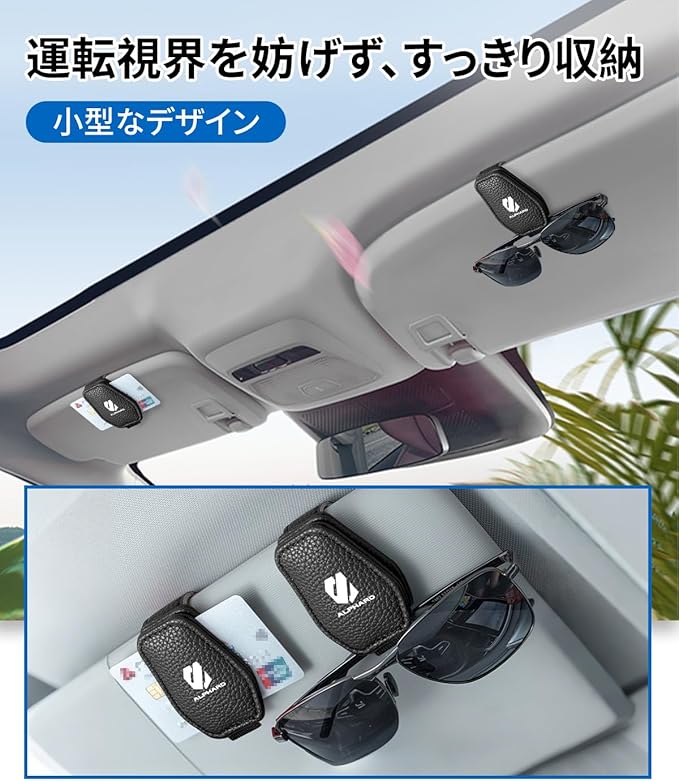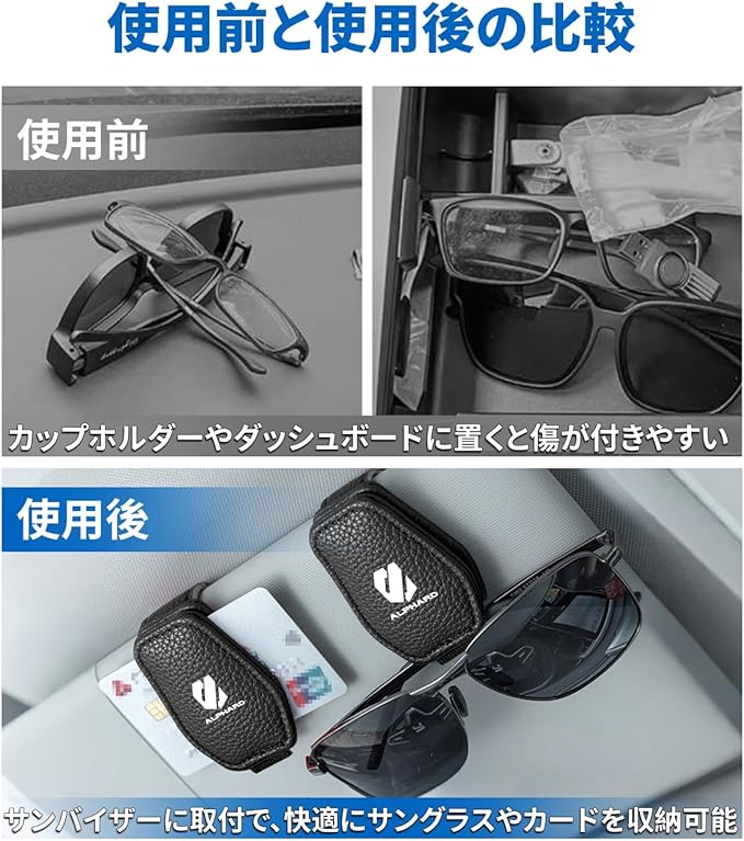アルファード 適用 車用 サングラスホルダー 片手使用 ALPHARD 専用ロゴ 車 メガネホルダー アルファード 20系 30系 40系 適用 眼鏡クリップ コンパクト 取付簡単 安全運転 バイザーに装着 レザー製 眼鏡を保護 車内 カー用品(ブラック,アルファード 専用)
