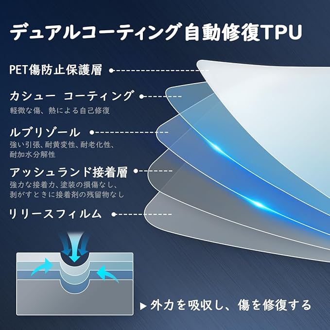 【高品質TPU 素材】TPU保護フィルムで作られ、透明性がよく、耐久性があります。熱による自己修復機能を備え、傷に強く、糊残りもほぼ無く、伸縮性、透明感に優れています。