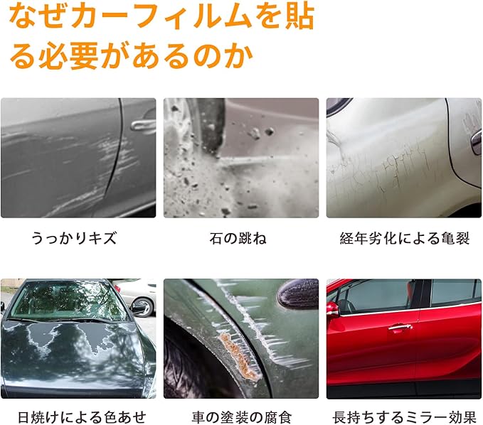 【愛車を保護】ペイントプロテクションフィルム、環境の変化に対応でき、酸性雨や鳥の糞など車の塗装の化学腐食を効果的にブロックします。紫外線での劣化・変色・黄ばみ・クラック、飛び石によるレンズの傷、虫の死骸の貼りつき、など車の塗装を効果的にブロックします。