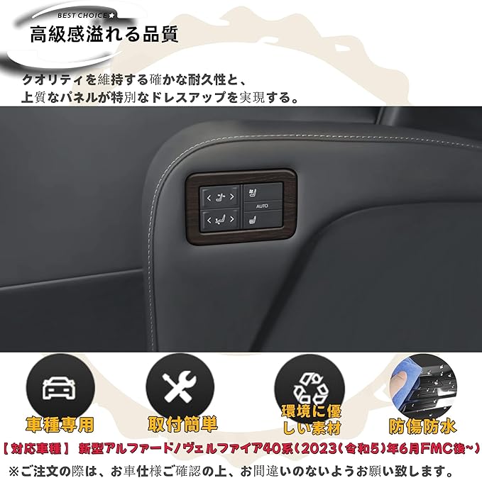 適用 新型 アルファード40系 ヴェルファイア 40系 カスタム アクセサリー パーツ 2列シートスイッチパネルカバー 車種専用 室内装 用品 グッズ 艶消木目調ブラウン