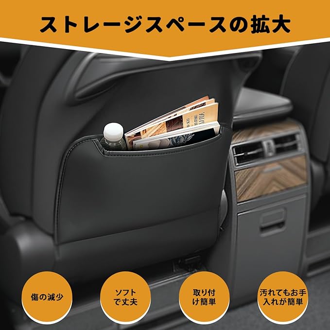 2.【多機能】キックガードを使って、大切な愛車のシート汚れをガッチリガード!ご愛車はいつまでも新しく、きれいな状態を保ちましょう~また、納ポケットがついており、いろいろ小物をしっかり収納可能です。収納スペースが広がり、旅行にも便利です。