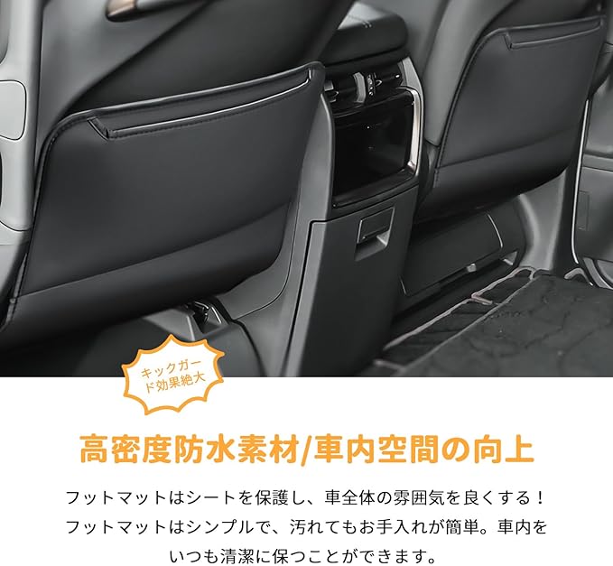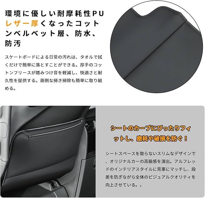 4.【高級マイクロファイバー&お手入れ簡単】車内雰囲気に溶け込みやすいブラック、気品に満ちた車内空間に違和感なく装着できます。後部座席のお子さまがシートを蹴って付ける汚れや傷なども心配することなくて簡単に拭き取ります。また、耐摩耗性および耐久性に優れる高級マイクロファイバーを採用し、厚みの高密度でクッション性が高く、車体に優しいです。