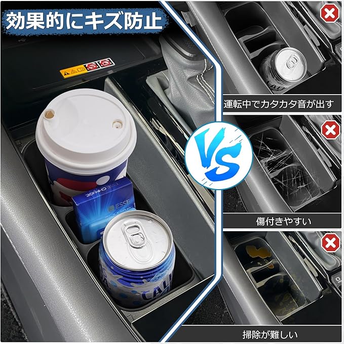 1.【適合車種】:トヨタ アルファード ヴェルファイア 40系に適合。年式:2023年-現行。ご購入の前に、お車のドリンクホルダーの形状をご確認の上お買い求めください。