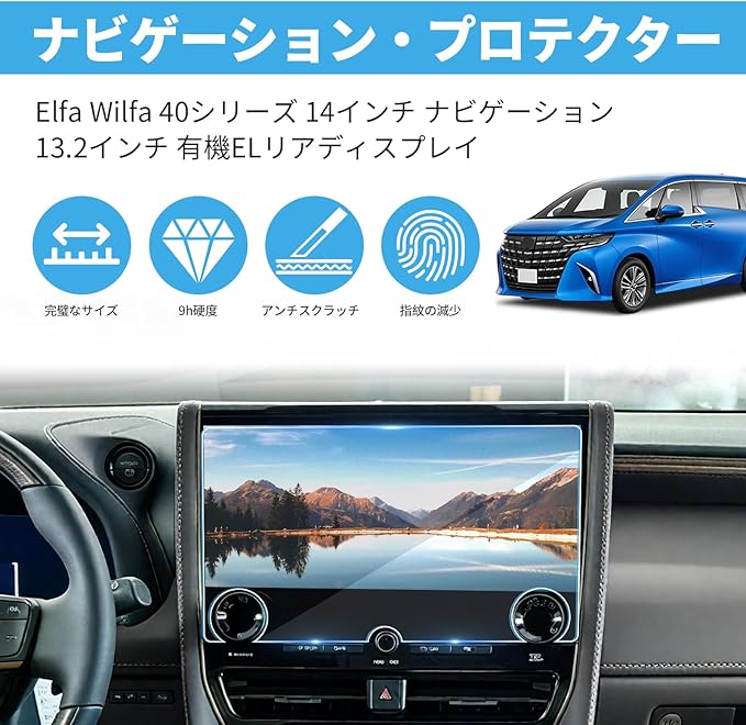 【2枚組:ナビ+後席モニター】強化ガラス フィルム 新型 アルファード ヴェルファイア 40系 用「全面保護」14インチ ナビ + 13.2型有機EL後席ディスプレイリアディスプレ ガラスフィルム 9H硬度 指紋防止 傷防止 貼付簡単 高感度タッチ 液晶保護フィルム 新型ヴェルファイア 新型アルファード 内装 カスタム パーツ(ガラス2枚)
