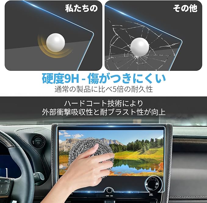 【傷つき防止&優れた耐衝撃性能】:アルファード 40 /40系ヴェルファイアのカーナビ 強化ガラスフィルムは硬度9Hの強化ガラスにさまざまな加工を施しており、飛散防止効果もあります。衝撃に強く、ディスプレイの割れを防止します。ナビ画面の傷や衝撃からしっかりと保護し、埃や傷だけでなく、強い衝撃からもディスプレイを守ります。フィルム自体が衝撃を吸収し、ディスプレイを保護します。