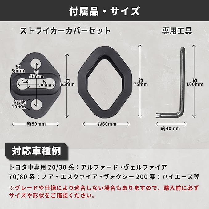【サビ・傷対策&ドレスアップにも】 金属部分のストライカーをカバーすることで、サビや傷の発生リスクを軽減し、美観をキープできます。マットブラックの質感が愛車の見た目を引き締め、さりげないドレスアップ効果も期待できます。