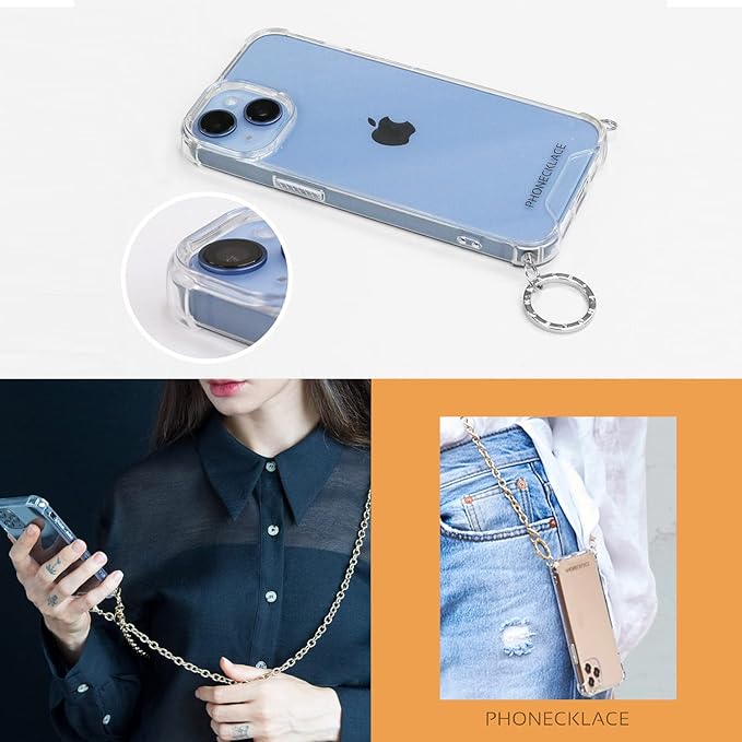PHONECKLACE「チェーンショルダーストラップ付きクリアケース」は、肩や首からiPhoneをかけることができるクロスボディケースです。