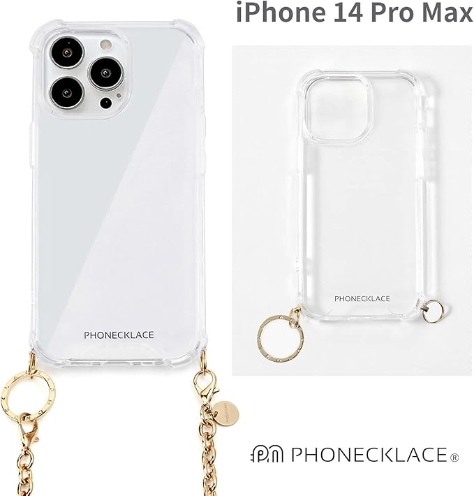 フォンネックレス iPhone 14 Pro Max 用 チェーンショルダー ストラップ付き クリアケース [ クロスボディフォンケース 首かけ 斜めがけ 肩掛け ネックストラップ ネックホルダー ] アップル アイフォンケース バックカバー 背面ケース PN23910i14PMGD ゴールド 【国内正規品】