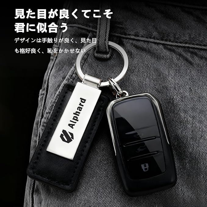 [InnoWave] アルファード 専用 キーホルダー車 Alphard 本革レザー アルファード 30系 40系 車のキーチェーン キーリング 車のキーホルダー 黒