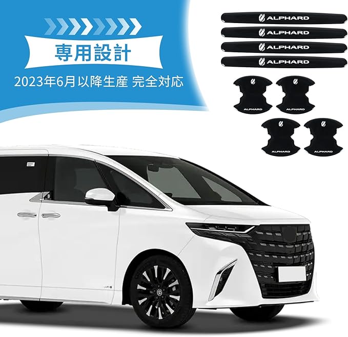 アルファード 40系専用 ドアハンドルプロテクター 8個セット AAHH40W/AAHH45W 2023年6月~対応 ブラック シルバーロゴ 傷防止 取り付け簡単(アルファード 40系)