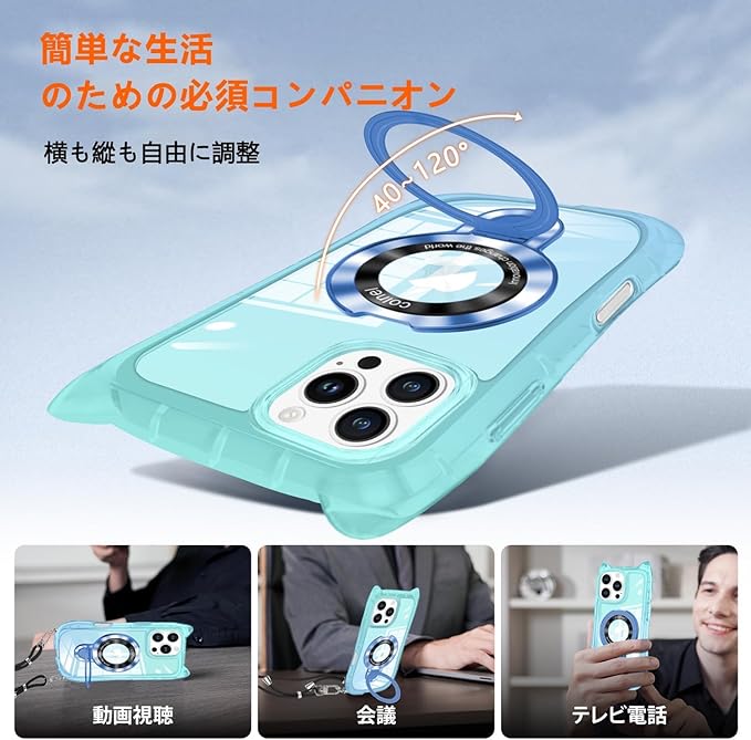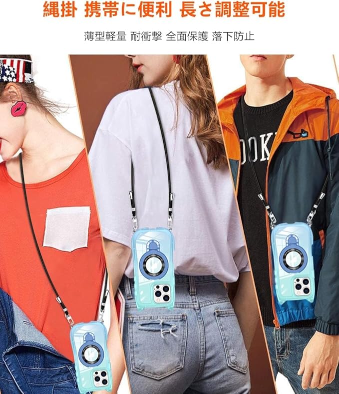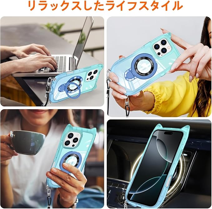 iPhone 17 用 ケース クリア MagSafe対応 リング付き TPUバンパー ネック ショルダー あいほん17 カラー猫耳携帯カバー 肩掛け 首掛け 斜めがけ 紐付き 韓国 かわいいファッション 耐衝撃 車載対応 アイフォン17 スマホケース