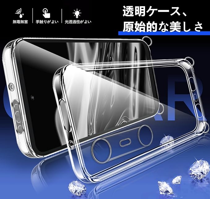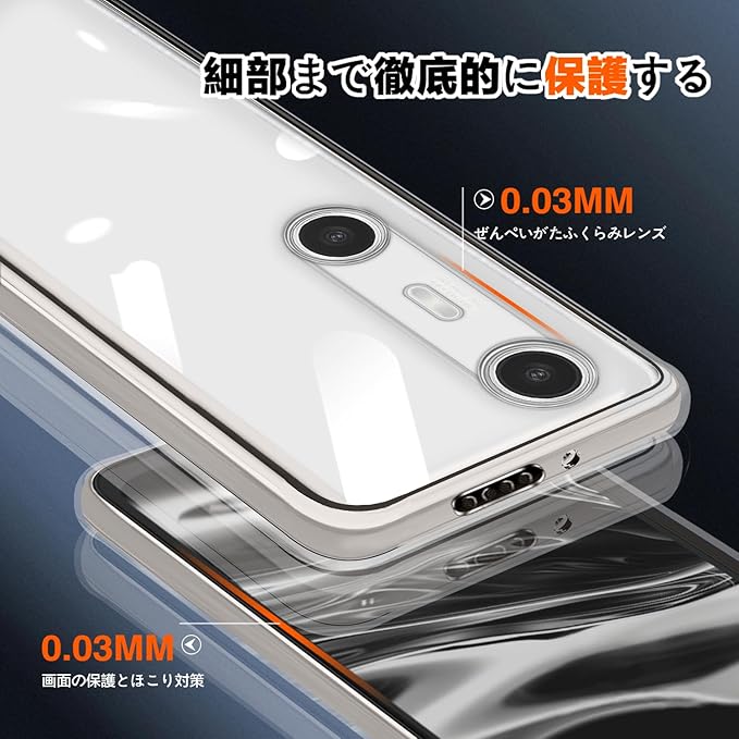 【高品質な素材】この透明な携帯ケースは、柔らかいTPU素材を採用して作られており、スマホ本体に近い手触りを感じることができ、持ち心地も快適です、落下のリスクも減らします。酸化を防ぐ特殊加工を使って、黄ばみにくく、透明感を長期間保持します。本商品は端末に触れるケース裏側に極小さな微粒子上の突起処理を行い端末の発熱を軽減する散熱加工を行っております、気泡の発生も防ぎます。