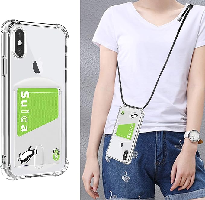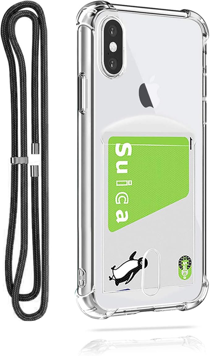 Pelanty for iPhone XS Max 縄掛けケース for iPhoneXS Max 背面カバー クリアケース 柔軟 シリコン 透明TPUバンパー ICカード収納 ネック ショルダー ストラップ付き アイフォンXS Max 落下防止 衝撃吸収 指紋防止 薄型軽量 (縄掛け-透明)