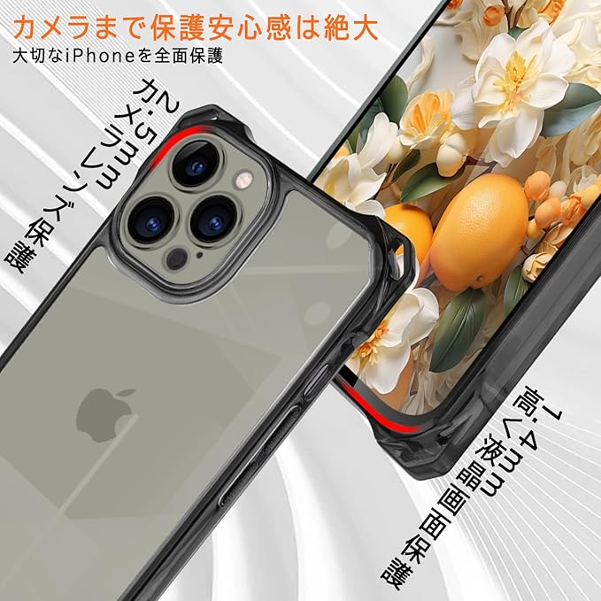 【保護機能】レーム部分とカメラのフチを高く設計し。平らな場所においても、液晶画面とカメラレンズに直接触れることがなく、ケースの四隅部分に"衝撃吸収テクノロジー"を採用し、これにより角からの衝撃を受けてもその隙間がクッションの様に本体への衝撃を吸収します。万が一スマホを落としてしまった場合でも、落下時のダメージを最小限に抑えることが可能となっており。