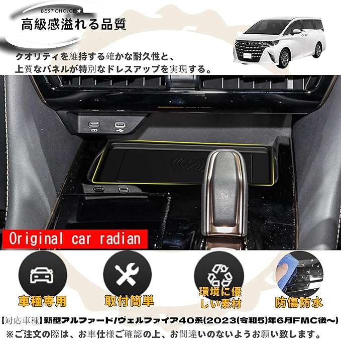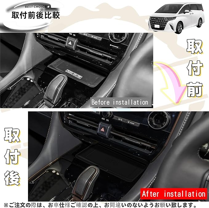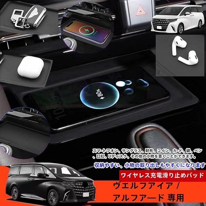 新型アルファード40系 ヴェルファイア/ベルファイア40系 アクセサリー カスタムパーツ 車種専用グッズ センターコンソール ワイヤレス充電 シリコンパッド トレイ トレイ 滑り止め パネルカバー ガーニッシュ用品 室内装 パーツ ブラック