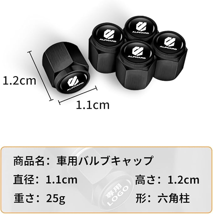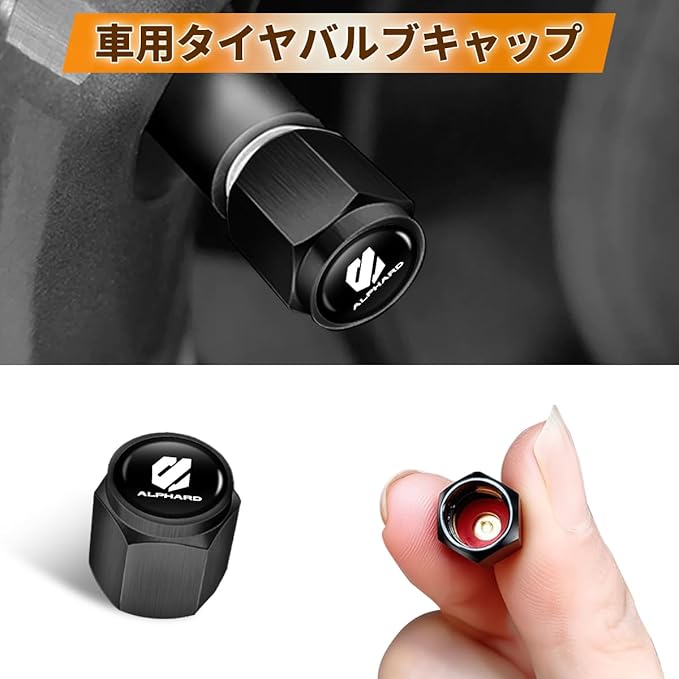 アルファード 専用エアバルブキャップ 車 タイヤエアバルブ タイヤバルブ交換用 カー 外装 パーツ 適用 Alphard 40系 30系 20系 六角形 円柱形 盗難防止 防錆 防水 エア漏れ防止(ブラック)