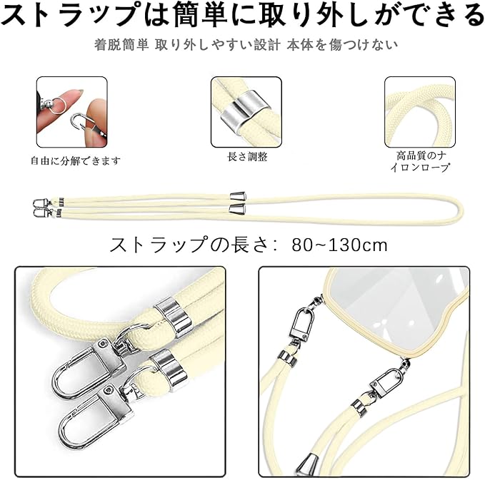 【長さ調整可能・使いやすさ】本iPhone15promaxケース柔らかいナイロンストラップで首を快適に保ち、ストレッチの長さを調整でき、ストラップを取り外して、電話ケースを単独で使用できます