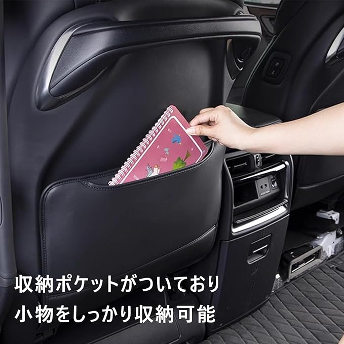 適合 トヨタ アルファード ヴェルファイア 40系 (2023年6月~) シートバックマット キックガード 収納ポケット付き 後部座席 運転席/助手席 (1列席(ブラック))