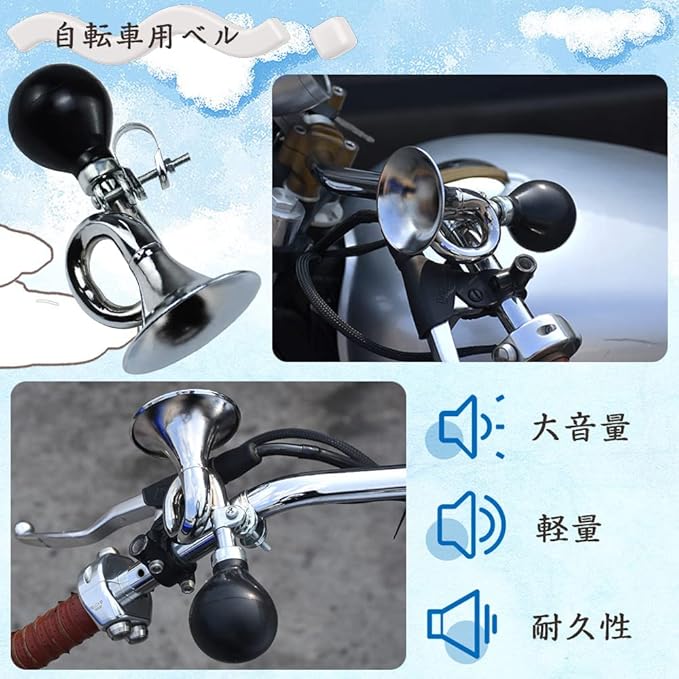 大きな音とクリアなサウンドで、歩行者や車両にあなたの存在を知らせ、潜在的な事故を回避するのに役立ちます。マウンテンバイクやロードバイクなど、あらゆるタイプの自転車に対応し、あらゆるレベルのサイクリング愛好家に最適なホーンです。