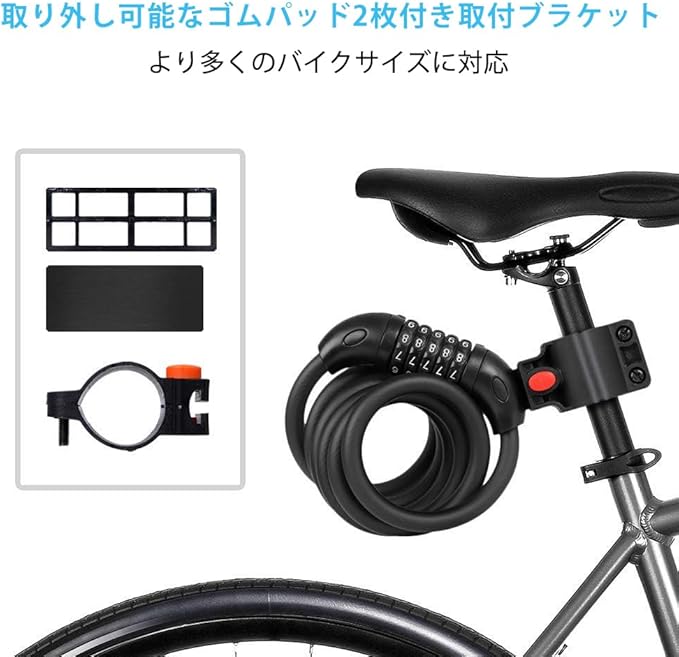 [取付ブラケットを装備 持ち運びやすい]ワイヤーロック自転車には取付ブラケットが装備されており、ロックを自転車の座席のそばに簡単に固定できます。持ち運びやすく、紛失しにくく、常に安全を確保します。移動中もロードバイク鍵をバックパックや布袋に入れることができ、日常の通勤に便利です。